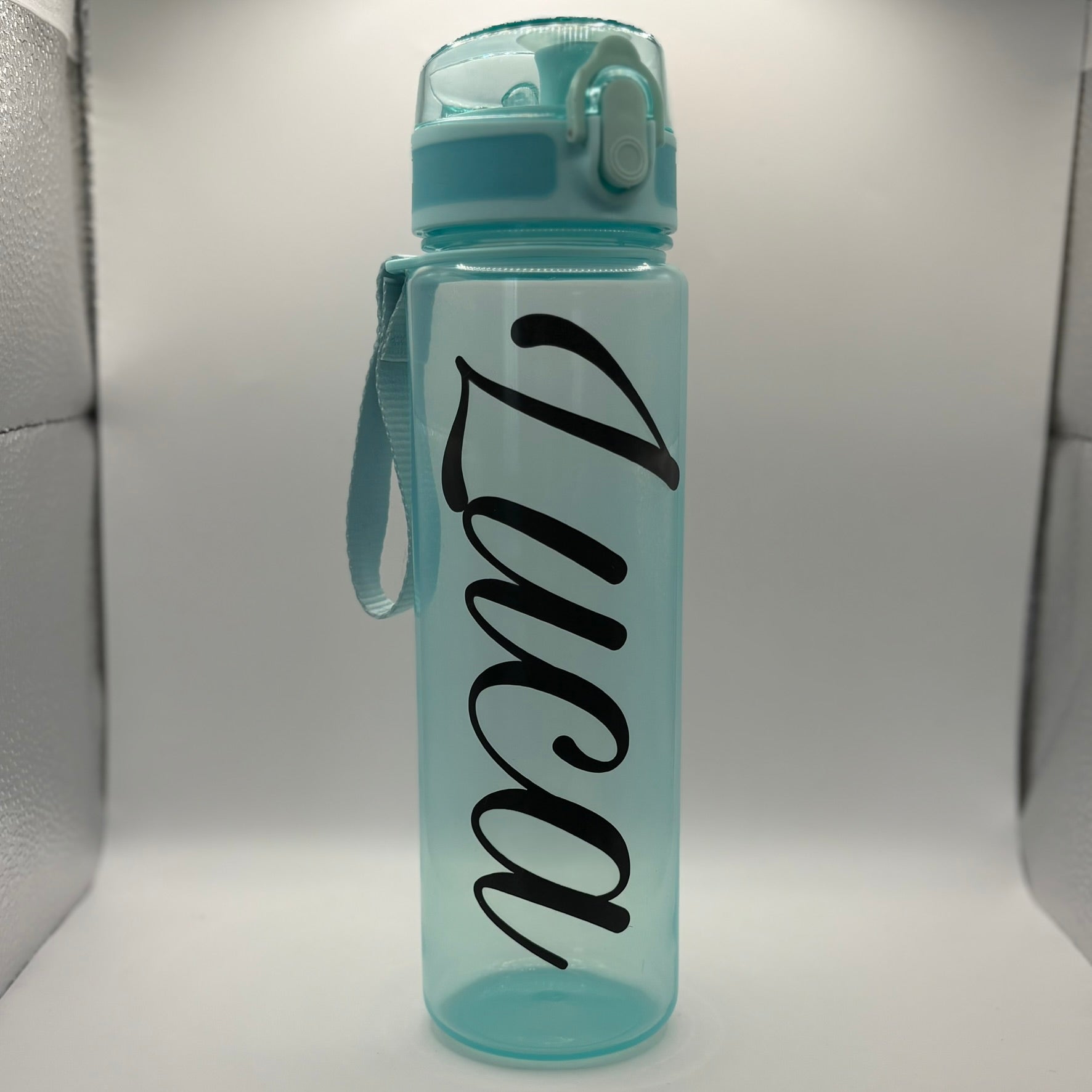 Deze mooie blauwe waterfles is helemaal nieuw en in perfecte staat. Alleen… er staat LUCA op gedrukt, terwijl het eigenlijk LUKA had moeten zijn.