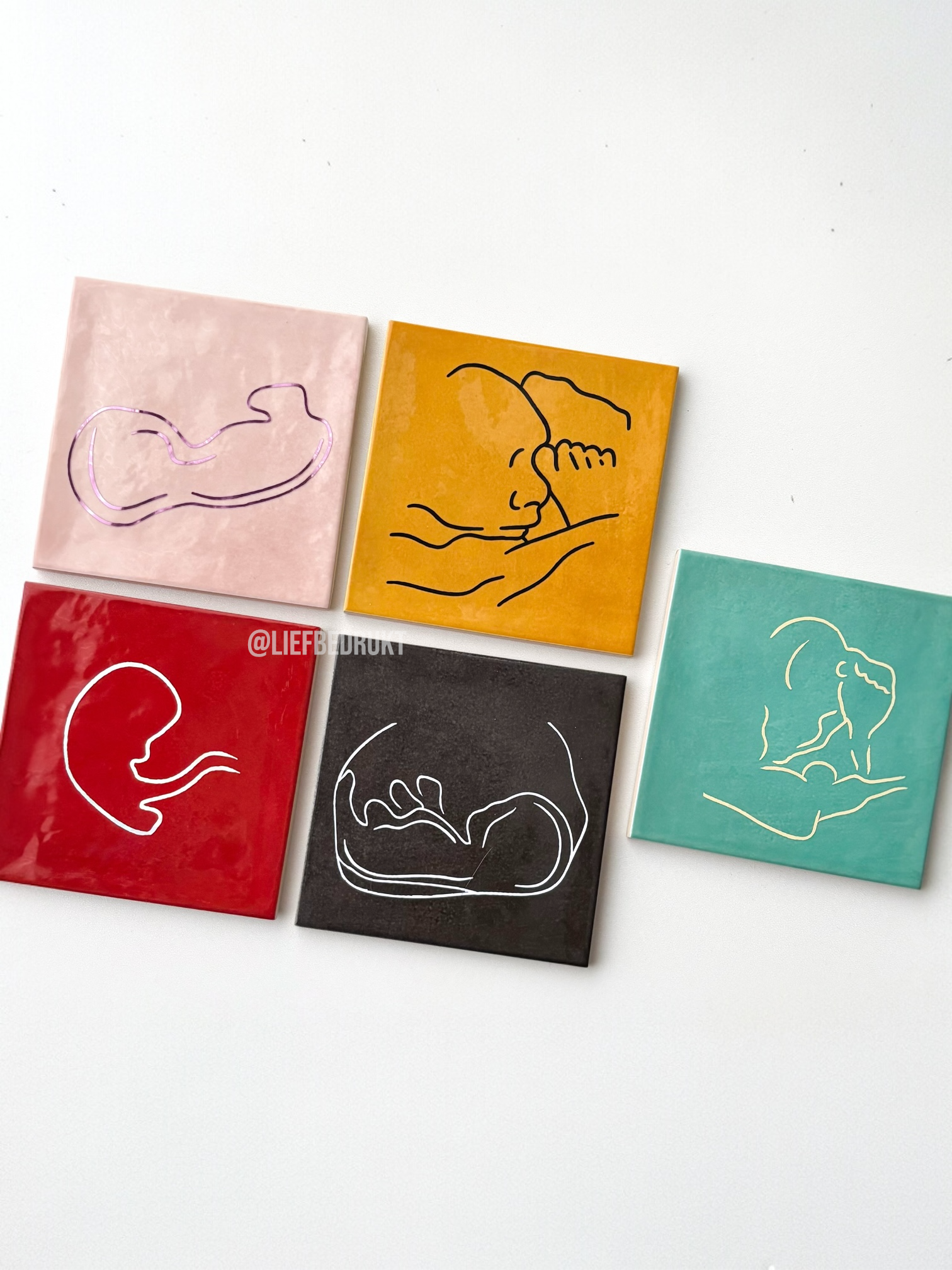 Vereeuwig één van de meest bijzondere momenten met dit handgetekende echo tegeltje. Elk tegeltje wordt met liefde en precisie ontworpen op basis van jouw eigen echo-afbeelding. Dankzij de unieke tekenstijl ontstaat er een persoonlijk kunstwerk dat perfect past in elke babykamer, woonkamer of herinneringshoekje.